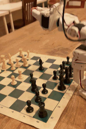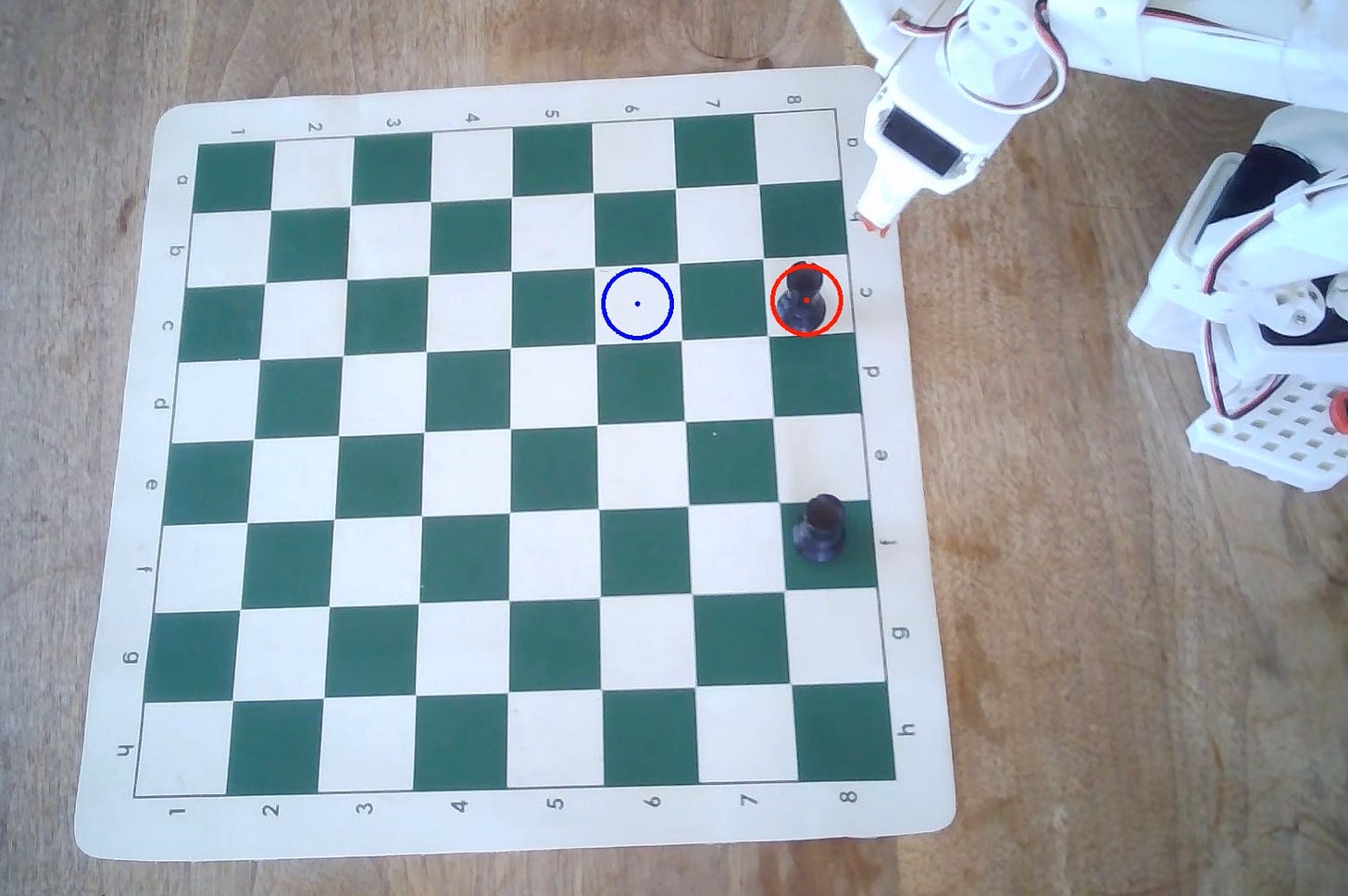 Result: yes! The arm always reached for the right piece. The success rate for the full movement was 24% (6/30). Often it missed the piece by a few cm, gripping air and then moving to the target square with an empty hand. Probably the dataset size.